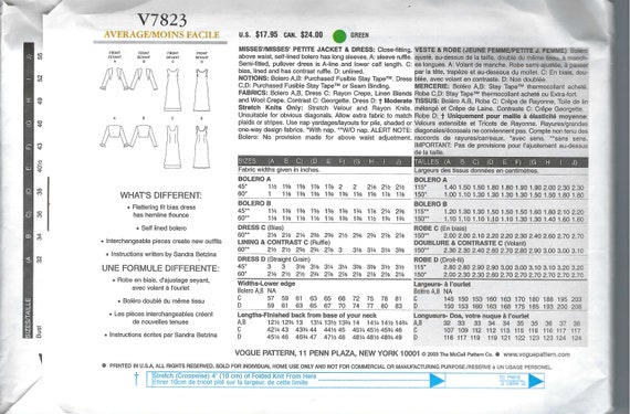 Uncut Vogue Sewing Pattern 7823 Bolero Jacket A Line Etsy